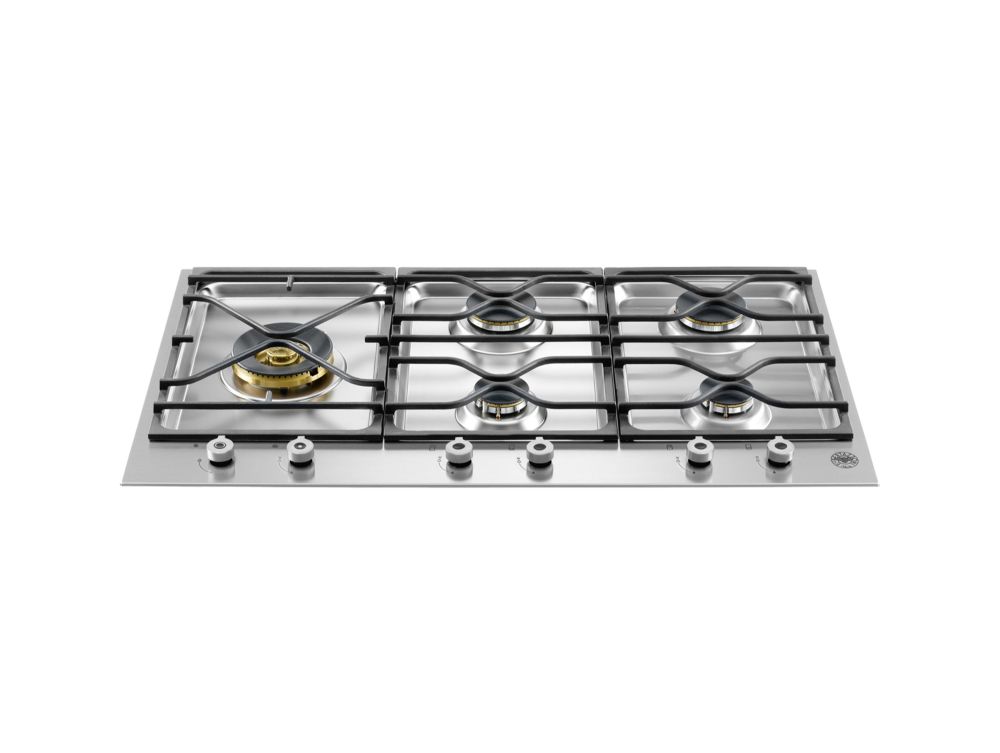 Трёхсегментная газовая варочная поверхность Bertazzoni серии Professional шириной 90 см выполнена из нержавеющей стали. Благодаря пяти латунным конфоркам и эргономичным металлическим рукояткам управления, приготовление пищи становится простым, универсальным и предсказуемым. Расположенная слева конфорка dual wok с тройным рядом пламени мощностью 5 кВт добавляет еще больше возможностей вашей кулинарии. Чугунная решётка прочная и безопасная.
