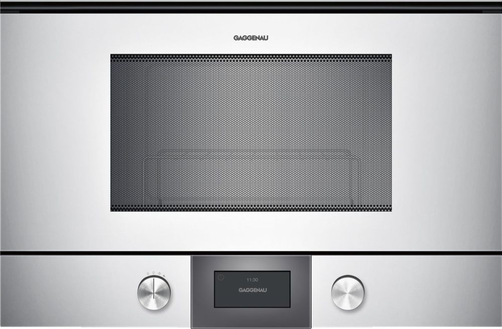 Микроволновая печь Gaggenau BMP224 - отличное подспорье на кухне, которое будет еще и прекрасно смотреться в гарнитуре рядом с остальными приборами Gaggenau. Максимальная мощность микроволн в приборе достигает 900 Ватт. Внутренняя камера выполнена из нержавеющей стали и имеет объем 21 литр. Прибор имеет 5 режимов приготовления, а так же несколько автоматических рецептов. Помимо этого в модели BMP224 есть гриль.