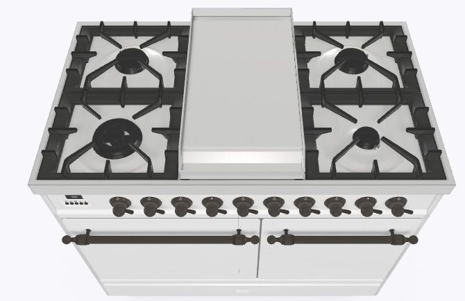 • Тип конфорок: 4 газовые конфорки, Dual конфорка, жарочная поверхность Fry Top