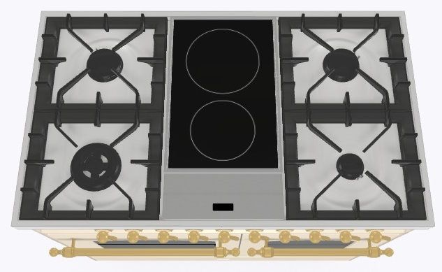 2 индукционные, 4 газовые, 1 Dual конфорка