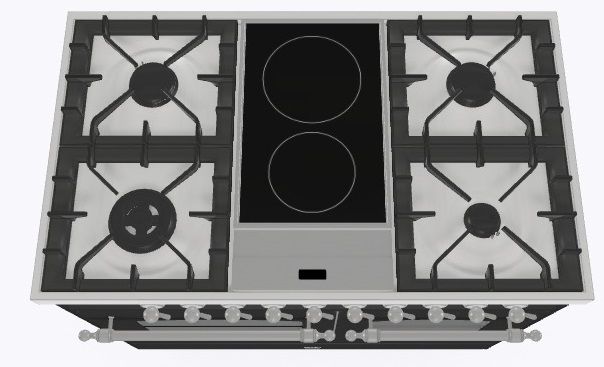 2 индукционные, 4 газовые, 1 Dual конфорка