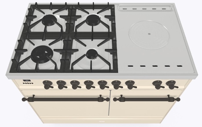 • Тип конфорок: 4 газовые конфорки, WOK конфорка, жарочная поверхность Coup de Feu