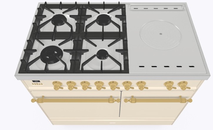 • Тип конфорок: 4 газовые конфорки, WOK конфорка, жарочная поверхность Coup de Feu
