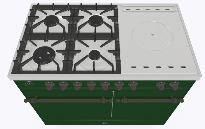 • Тип конфорок: 4 газовые конфорки, WOK конфорка, жарочная поверхность Coup de Feu